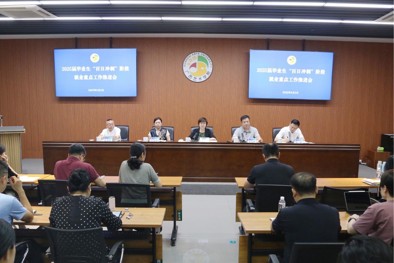 6月5日下午,m88明昇在漓江画派艺术中心101报告厅召开2025届毕业生“百日冲刺”阶段就业重点工作推进会。学校领导查丹明、毛茂林、韦春灵、谢斌、石向东出席会议。会议由学校党委副书记毛茂林主持。