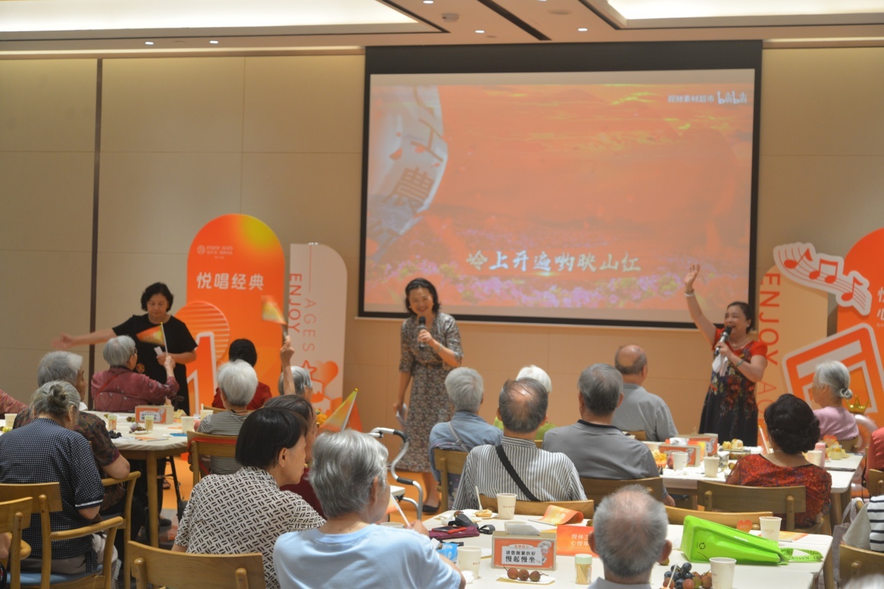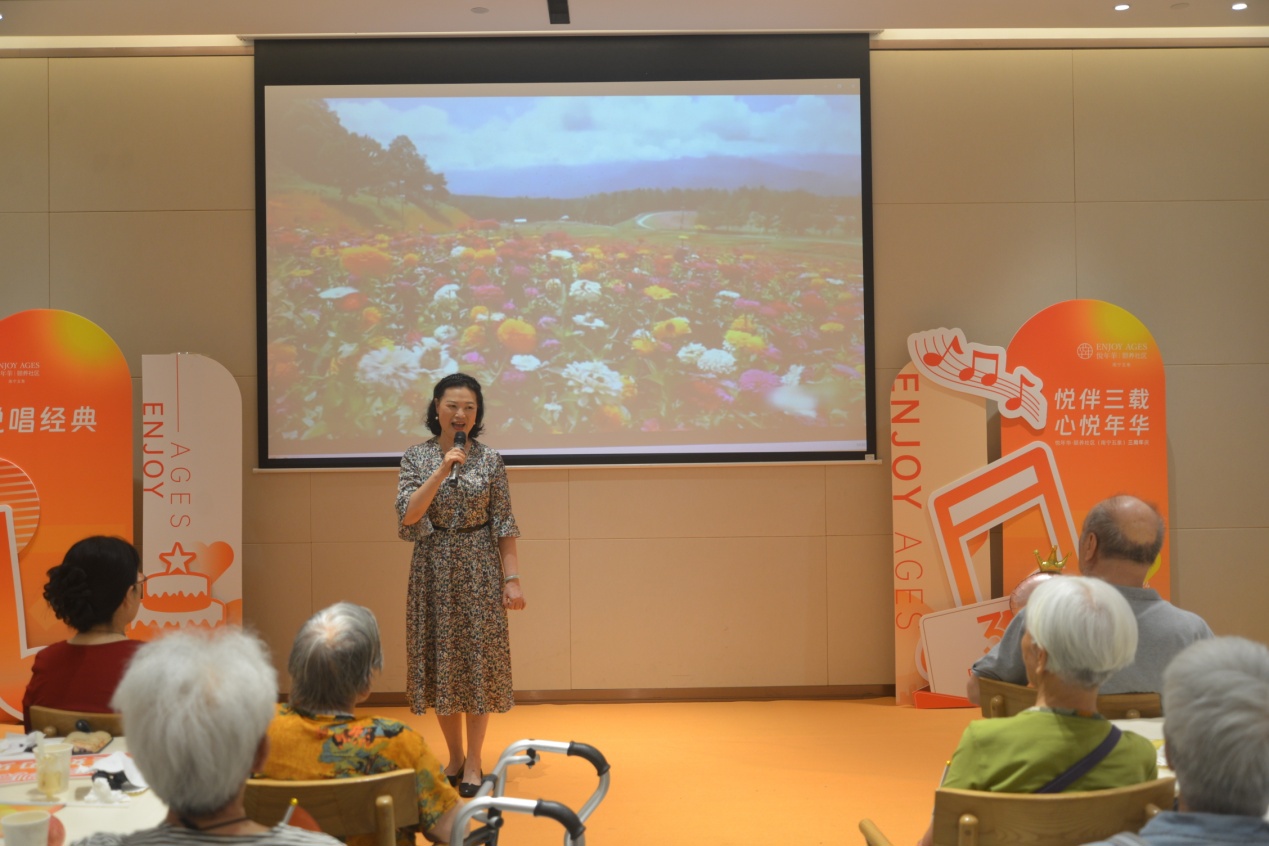 学校离退处组织老同志为悦年华颐养社区长者演唱了《我的祖国》《北京的金山上》《毛主席的话儿记心中》《游击队歌》《弹起我心爱的土琵琶》《映山红》《沂蒙颂》《敖包相会》《十五的月亮》《走进新时代》《年轻的朋友来相会》等经典歌曲。这些耳熟能详的经典老歌在欢唱会现场唤起了观众的共鸣,情不自禁的参与到现场的演唱当中。老同志们的精湛演唱,为观众留下难忘的回忆,得到了现场观众的热烈掌声。